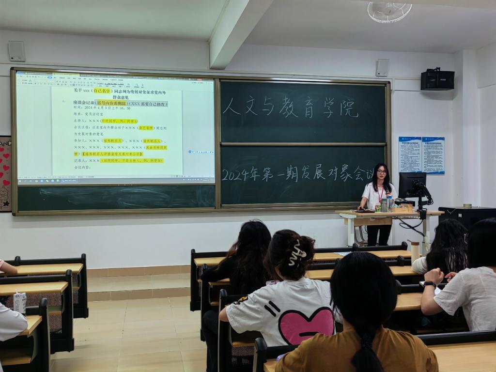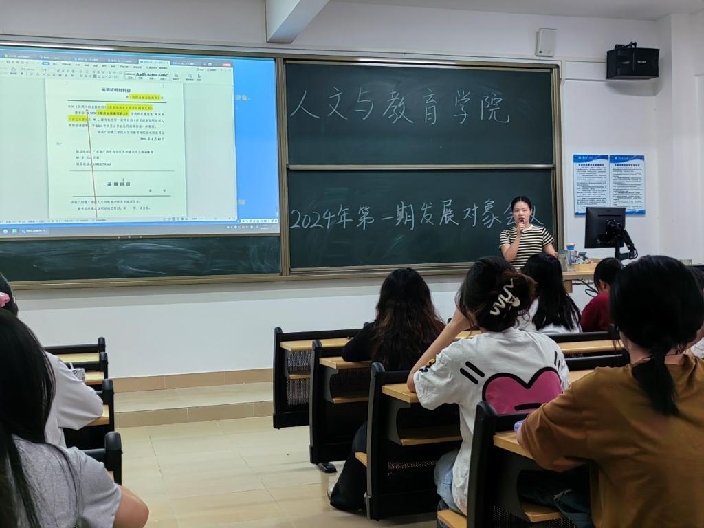 为深入学习贯彻党的二十大精神,严把党员队伍的“入口关”,加强发展对象的培养和教育,人文与教育学院学生第一党支部于4月12日在7-402召开2024年第一期发展对象培训会议。人文与教育学院党总支组织员王倩,党务工作人员以及2024年第一期31名发展对象参加此次培训。