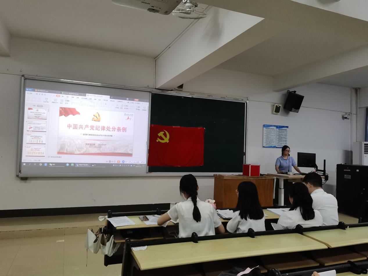 为了深入理解和贯彻新修订的《中国共产党纪律处分条例》,确保党员干部能够全面掌握、深刻理解并严格遵守党的纪律,人文与教育学院学生第一党支部和第二党支部在7栋218和7栋217两个教室分别组织召开了学习党纪的专题例会,此次会议由人文与教育学院第一党支部书记王倩同志和第二党支部副书记李钰同志主持,两个党支部的全体学生党员积极参与,共同学习交流,确保将党的纪律内化于心、外化于行。