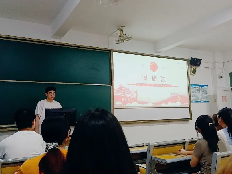 2024年6月2日晚上7点,为进一步增强同学们的爱国意识和法治观念,让同学们更加了解国旗的重要性,文教院各班组织开展了学习《国旗法》的主题班会活动。