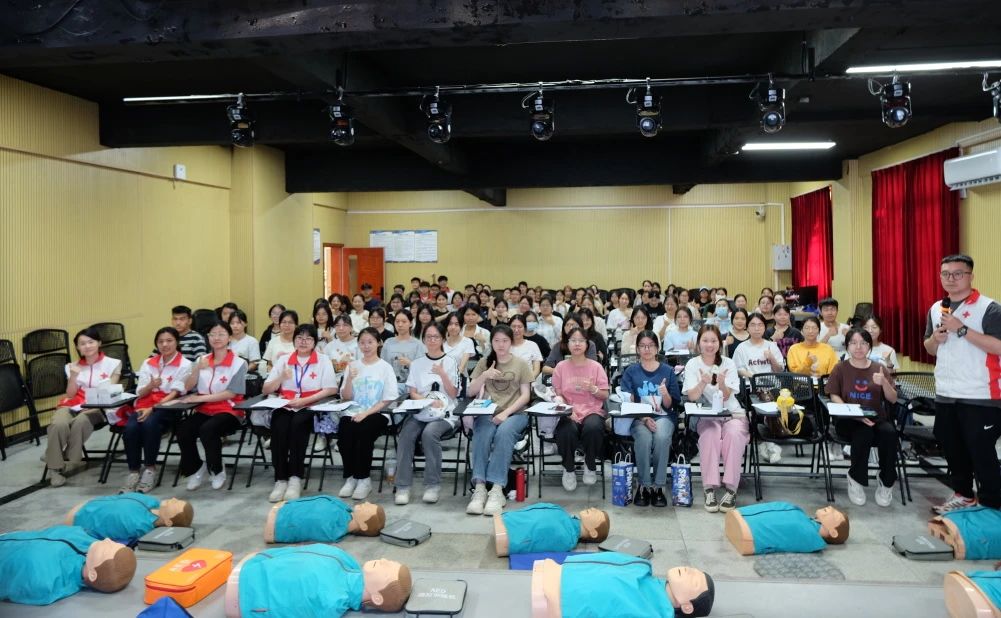 互动答疑环节中,师生围绕“患者意识判断”“多人协作施救分工”等急救场景展开研讨。培训师依据国际急救指南,现场解答疑问并延伸演示AED(自动体外除颤器)规范操作流程,完善急救知识体系。“这次培训既有专业深度又具实操价值,既填补急救知识空白,也消除了应急时的心理障碍。”参训学生代表说道。