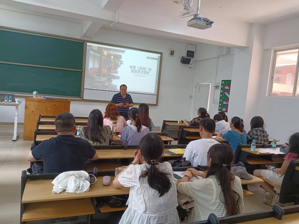 为了提高新教师的教学水平,增进教学认知,6月28日,人文与教育学院邀请陈南先教授为新入职的青年教师开展示范课培训活动。陈南先教授以《老舍〈茶馆〉的语言艺术赏析》为题,展示了中国现当代文学课程应有的教学理念、教学方法、教学设计和教学技巧。人文与教育学院汪美葵副院长及新入职教师共同观摩了此次示范课。