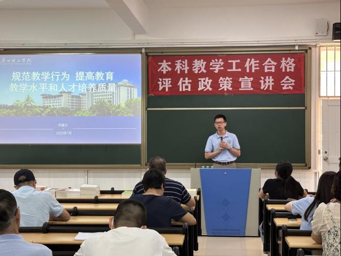 本科教学工作合格评估政策宣讲会是继7月7日正式全面启动评建工作的本科教学工作合格评估动员会以后召开的又一系列重要会议。本次宣讲内容丰富、清晰、生动,为全体教职员工迎接本科教学工作合格评估打了一剂强心针。听取宣讲会之后,教师们的使命感和责任感都有所提升。人文与教育学院教师陈逸清表示,人文与教育学院作为2022年建立的新学院,目前院内已经紧锣密鼓地开展了种种评估理念宣讲、评估指标自查自纠工作。她认为学院各位老师在“校荣我荣、参与评估、人人有责”的主人翁意识下,聚全院之心、集全院之智、举全院之力,必能真正做到“人人了解评建,人人关心评建,人人参与评建,人人为评建作贡献”。