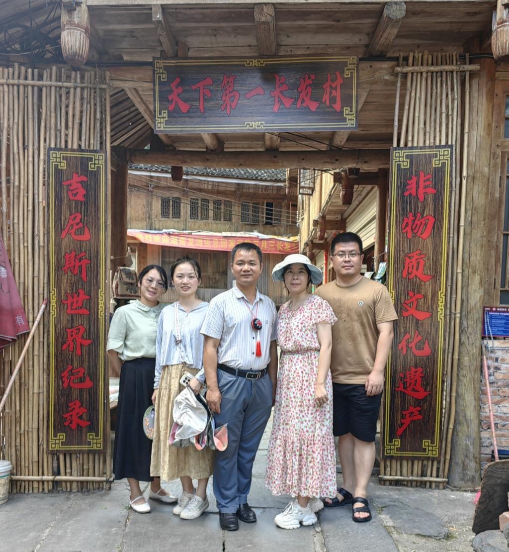 2024年7月20日上午8点,“十四五”规划建设教材项目“岭南民族民间艺术鉴赏”调研团队在覃守达教授带队下,从williamhill中国官网白云校区出发,历时三天(7月20-22日)依次实地调查了广西梧州市万秀区龙母庙、贺州市富川瑶族自治县新华乡虎马岭屯瑶族芦笙长鼓舞传承基地、桂林市龙胜各族自治县和平乡黄洛瑶寨,采访相关非遗传承人、学者,搜集并整理瑶族民间艺术第一手材料。