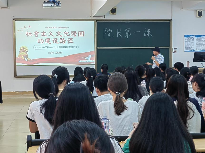 为深刻领会习近平总书记在党的二十届三中全会上阐述的重大课题,积极探索社会主义文化强国的建设路径,并加强对宣传思想文化阵地的管理和思想文化工作队伍的建设,人文与教育学院于2024年9月26日在7栋418特别召开了“院长第一课”。由我院周卫忠院长授课,人文与教育学院23级全体入党积极分子参与学习。
