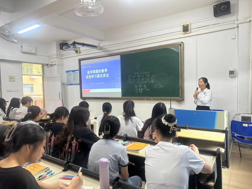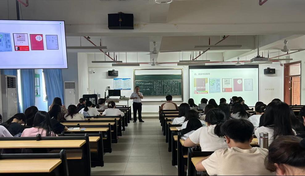 办好人民满意的教育是我国教育事业不断改革和发展的根本宗旨。在新时代背景下,我国基础教育步入高质量发展的新阶段,高质量教育对学校教育的课程和师资队伍建设提出了更高要求和挑战。基于高质量的教育发展走向,林晓红主任分享了广理实小的跨学科活动部分实践案例,向学生们展示了新课程改革背景下,小学教师构建跨学科活动的方法、步骤及存在的困境;高海涛主任与教育系师生共同研习、分析我国课程改革的最新政策文本《义务教育课程方案和课程标准(2022年版)》,呈现了让核心素养可见下的课程质量观的整体框架,使学生们深入领会新课标的精神实质,更加深刻、全面地理解新课程标准下的教育新理念、教学新方向,切实转变教学观念。林妃主任则聚焦小学课堂,结合丰富的教育教学实践经验,以具体的教学案例讲解了新课改下学校教育实践探索的新方法,给现场的同学们展示了“作业超市”“作业漂流”多种新颖又符合小学生需求的新教学思路,将自身宝贵经验和对教学的深度思考倾囊相授于现场师生,获得了大家的热烈掌声。