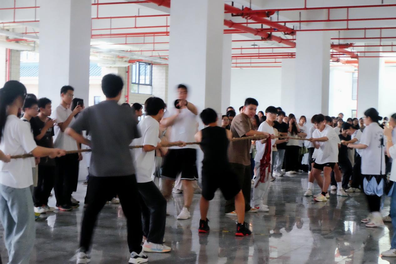 此次拔河比赛,全体同学都以高度的热情参与其中。既锻炼了同学们的体魄,也增强了同学们的集体荣誉感。尤其在胜负难分的时刻,大家毫不退却,咬紧牙关,坚持到底。赛场上的队员个个斗志昂扬,他们用汗水为我们讲述了团结一致的含义,同时他们坚强的毅力和拼搏的精神感动着我们每一个人!