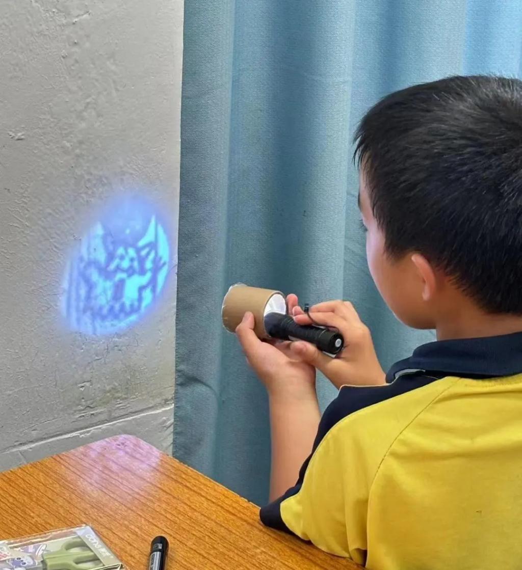 纸杯投影课,则是科学与艺术的浪漫邂逅。简单的材料,在创意的催化下,变身为光影魔术师。孩子们亲手制作的小小投影仪,不仅映射出了奇妙的世界,更点亮了他们探索未知、敢于创新的火种。