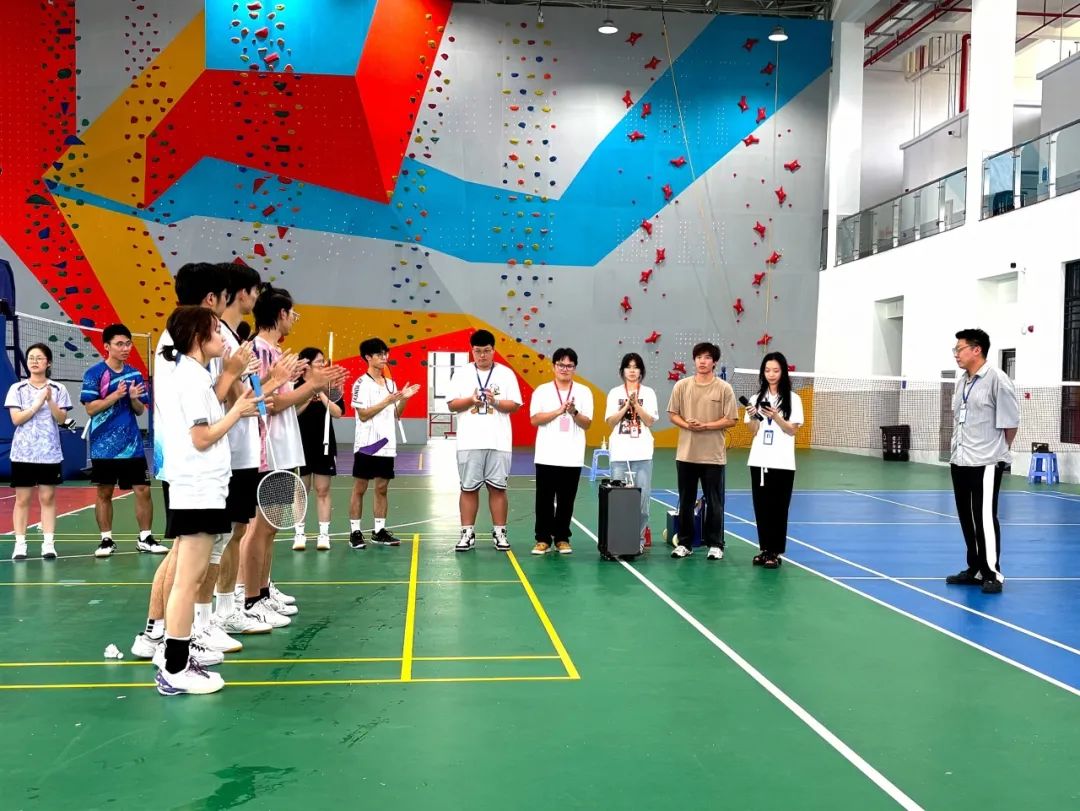 来自广州、惠州两校区的六支精英队伍提前抵达赛场。选手们或挥拍热身调整状态,或聚首商讨战术策略,跃动的身影与专注的目光交织,点燃了赛场的紧张氛围。随着主裁判哨声响起,三场强强对话拉开帷幕——广州校区的“一定队”“羽众不同队”“随机应队”分别迎战惠州校区的“考试全蒙队”“危险派队”“追我都乖乖排队”。