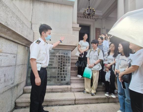 粤海关博物馆以海关文物收藏展示、海关历史建筑保护、粤海关历史研究等业务为核心,致力于传承海关历史,传播海关文化,弘扬海关精神,打造海关开展对外文化交流的窗口和平台。同学们在现场两位讲解员的带领下,由外到内进行参观。依次了解了粤海关博物馆的建成历史以及其建筑特色。