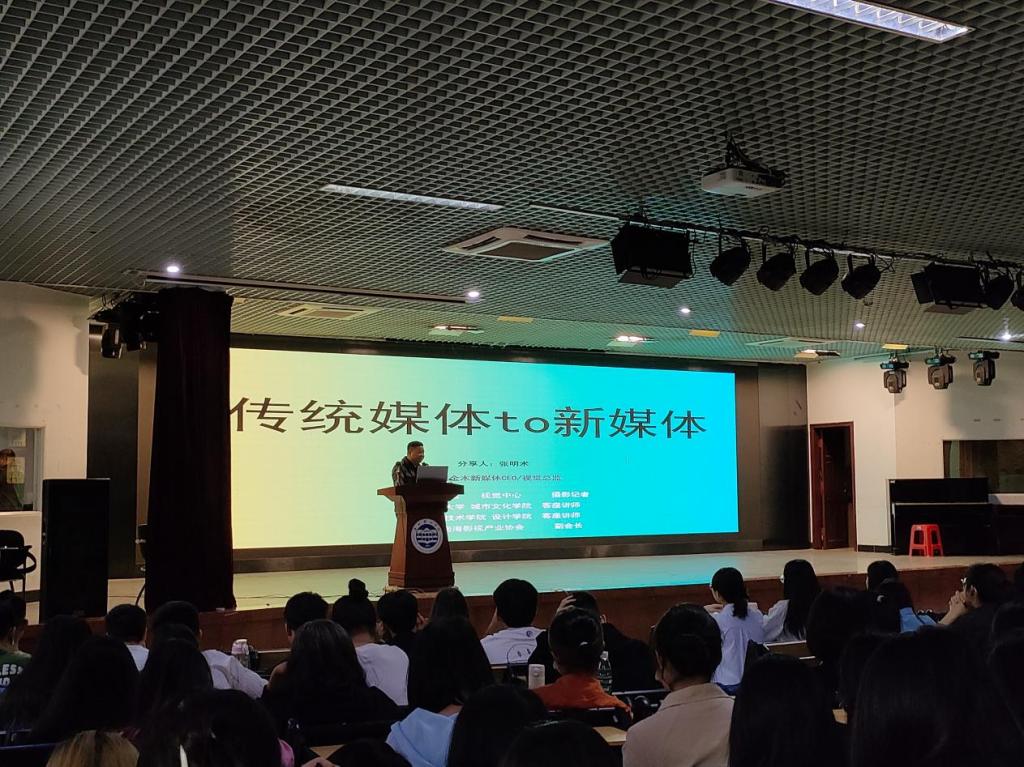 4月25日,人文与教育学院在2号报告厅举行新媒体传播讲座,讲座邀请了广州金木新媒体总经理张明术先生,为大家讲解从传统媒体到新媒体的发展过程。