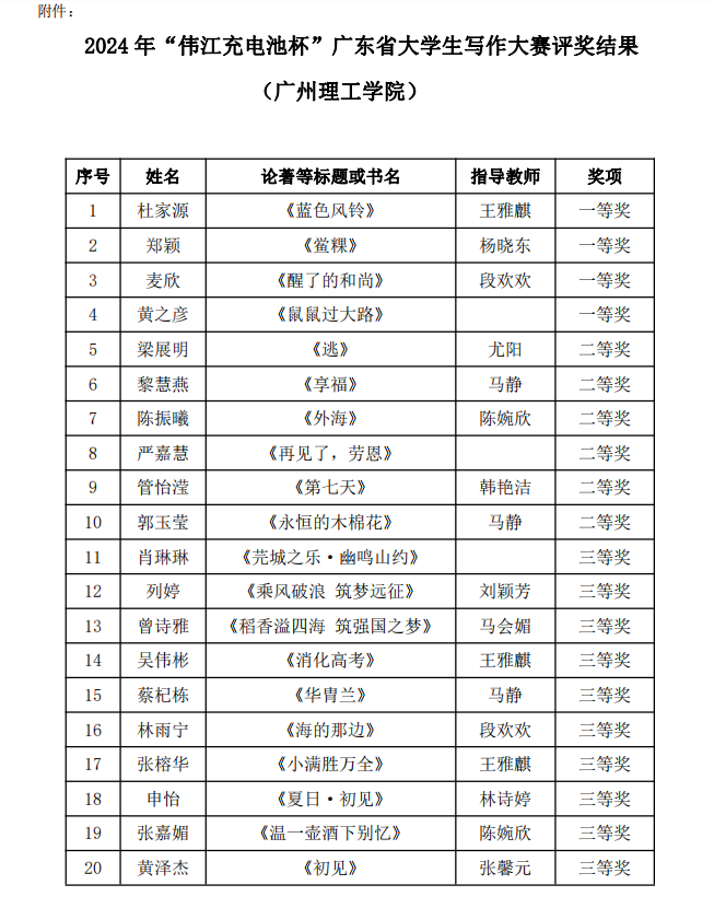 附件:2024 年“伟江充电池杯 ”广东省大学生写作大赛评奖结果(williamhill中国官网)
