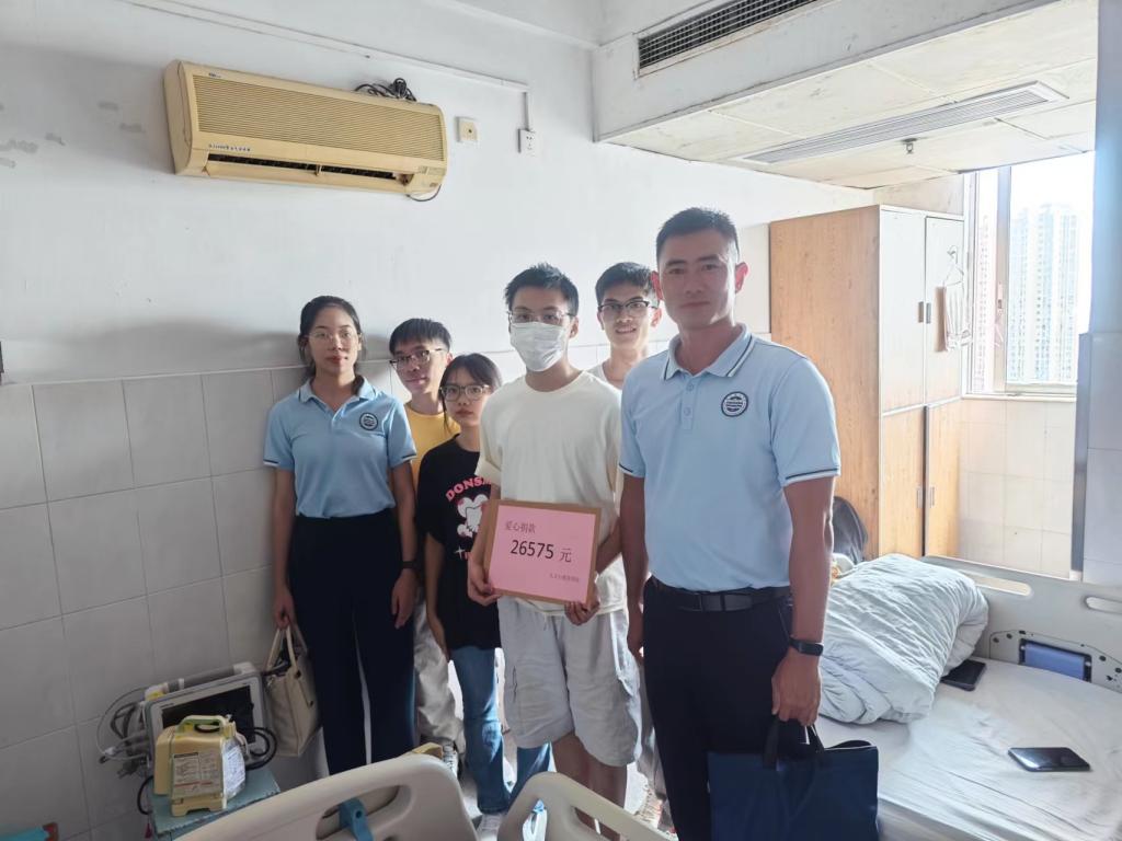 学院书记、辅导员及学生代表询问了王森同学的治疗情况和生活情况,并叮嘱他一定要听医生的话,放下心理包袱和思想负担,积极配合治疗,努力康复。学院书记和辅导员将全院师生的善款郑重交到王森家人手中,嘱咐他们多多保重身体、注意休息,表示学院会持续关注王森同学的病情,祝愿王森同学早日康复。此次爱心捐款活动,不仅给面临困难的王森同学的家庭送去了希望和力量,还彰显了“病魔无情,文院有爱”的善举,更体现了我院全体师生共同互助的高尚情操,同时唱响了“学用心志,行知诚明”的广理风尚,弘扬爱心正能量,愿王森同学早日战胜病魔,重返校园!