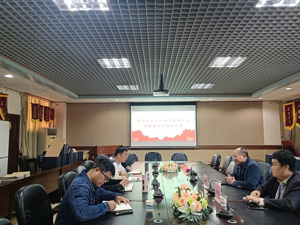 黄书记认真听取了学院领导班子的汇报并充分肯定了人文与教育学院创办以来取得的不错成绩,同时针对下一阶段重点工作提出建设性意见。一是要发挥优势,结合汉语言文学和小学教育专业特色,培育标志性成果,量化指标,明确任务。二是按照学校部署,大力推进本科教学合格评估工作。三是学院党建工作要严格遵守程序,党政联席会议、教工党支部会议要正常开展,加大力度培育品牌和特色,在百千万工程和学生志愿者服务等方面实现突破。