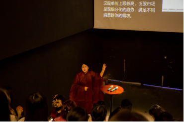 谢嘉妍老师以“从心理学看汉服消费”为题,指出汉服是个文化符号、汉服是件经济产物、汉服是些流量密码,她从心理学的视角分析汉服消费、如何促进汉服消费,提出汉服消费要有自我标签、个性追求、民族认同、文化自信。她现场邀请汉服爱好者展示不同的马面裙,并在讲座结束后与听众交流汉服的海外产业发展路线。