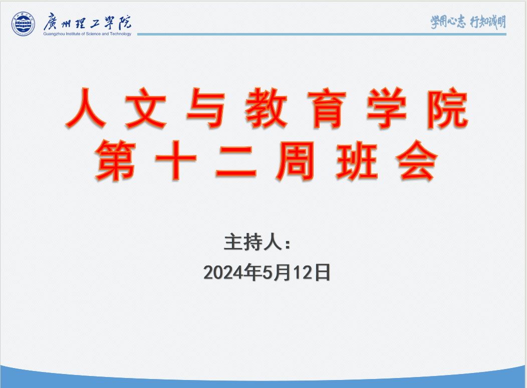 5月12日,人文与教育学院各班开展了第十二周班会,在班会开始之前,班委对同学进行严格考勤,详细落实请假学生名单、原因及去向,确保学院能全面掌握学生的出勤情况。