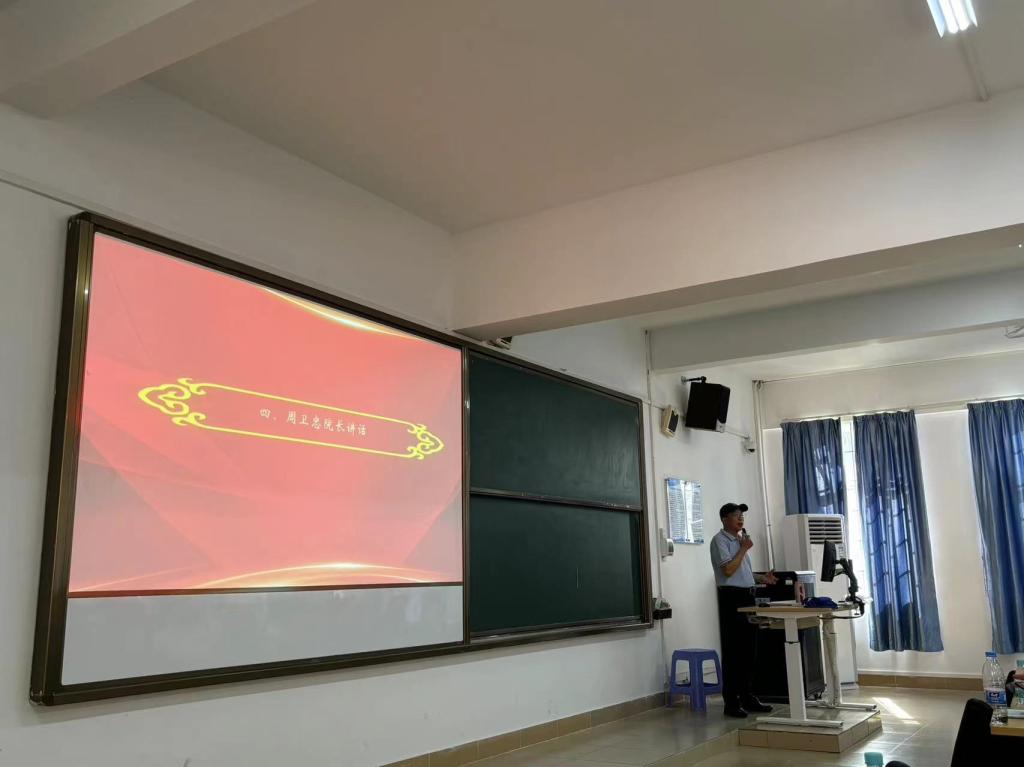 会上,陈南先教授对新学期新入职的教师表示热烈地欢迎,并对在“2023-2024学年教学大纲专项评估”“2023-2024教学质量专项评估”及“2024年第六届全国大学生语言文字能力大赛”中获奖的老师予以表彰鼓励。教学副院长汪美葵博士对新学期教学运行工作、毕业论文、教育教学评价方案逐项进行了汇报,她表示要严格把控教育教学进度,做到“零”教学事故;优化教育教学质量评价标准,通过结果评价促进教师提高教学质量;充分发挥校院两级督导、银龄老师的作用,保证首届毕业论文工作顺利完成。周卫忠院长针对学院师德师风建设作出详细指示,他强调良好的师德师风是学院发展长盛不衰的法宝,要将师德师风内化于日常教育教学过程当中,做学生的表率、引路人;教师要增强学院的集体意识,严于律己,保障学院教育教学工作的顺利开展。