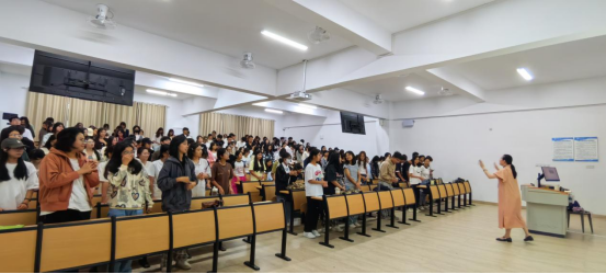 为了帮助学生更好地理解身心健康的重要性,以及如何实现身心灵的和谐发展,罗光丽博士结合教育、艺术教育和心理学的视角,从“身、心、灵概论”、“身心灵和谐发展的健康生命观”和“身心灵和谐发展的艺术模式”三方面主要内容展开生动有趣且精彩的探讨,在讲座期间,更是通过绘画、舞蹈等形式进行趣味且有效的互动和“艺术治疗”。