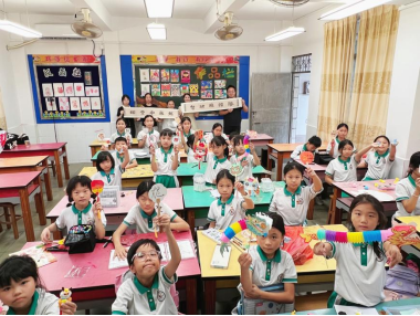 图8 与太和第二小学学生合影留念