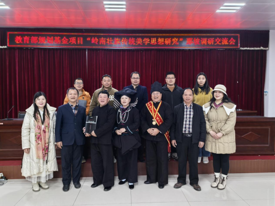 下午,调研组在那坡县召开了“岭南壮族传统美学思想研究”(那坡)调研交流研讨会,县文化馆、县民宗局、县志办以及那坡壮族民歌国家级和自治区级传承人等领导专家齐聚一堂,共同探讨黑衣壮文化的传承与发展。县文化馆重点介绍了那坡壮族民歌的发展历史、文化内涵和传承现状,并向调研组提供了精心整理的本地山歌集。这些民歌不仅是娱乐形式,更是文化传承和社会教化的工具,其内容涵盖历史传说、伦理道德、生产生活等多个方面,体现了黑衣壮族人民对生活的深刻观察与思考。