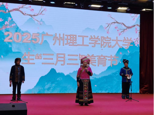 活动中,各社团轮番登场,带来极具民族特色的表演,岭南民族民间艺术美育协会山歌队以一曲《壮家敬酒歌》开场,接着男女进行了对歌,致敬经典,再现“刘三姐对歌”的灵动场景;茶艺社通过优雅的茶艺表演传递传统礼仪之美;壮韵组合则以欢快的歌舞《三月三来共欢乐》点燃全场热情。文学社的诗歌朗诵更是将壮乡的山河画卷娓娓道来,引发观众共鸣。