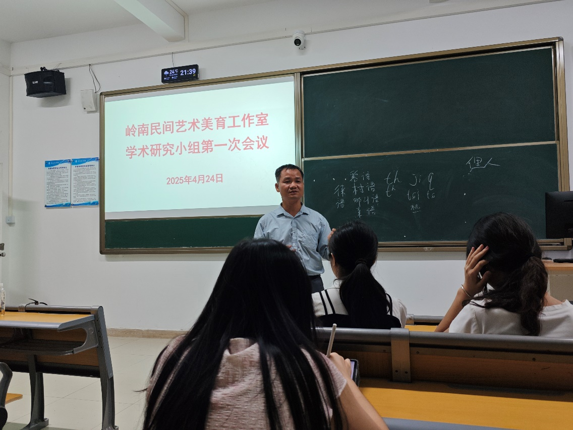 为深入推动惠州市博罗县嶂背畲族民间艺术实践教学基地的学术研究,岭南民间艺术美育工作室的学术研究小组于2025年4月25日召开首次学术交流会。会议由符昌忠老师、覃守达老师及吴俊朋同学主讲,围绕畲族语言保护、学术研究方法及学习心得体会等议题展开探讨,工作室成员在老师指导下初步完成了研究选题规划,为后续调研工作奠定基础。