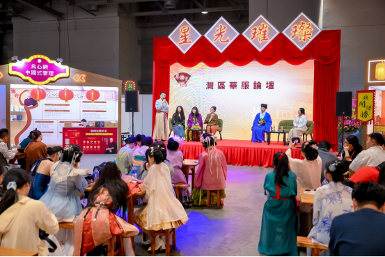 除了论坛以外,新增了国潮文脉沙龙,邀请了国内知名的传统服饰的教授、专家和受欢迎的国风博主,结合2025年粤澳名优商品展的主题“银发经济”和“国潮经济”,浙江理工大学服装学院副教授黄子棉、屡次获外交部点赞的大热国风达人思喵、最受欢迎bilibili知名汉服穿搭博主之一亚力克山大、广东职业技术学院服装设计讲师及襦一坊非遗汉服工作室主理人陈一然和德国华夏文化研习与交流协会会长邵肖明从专业的角度去探讨如何让年轻人热爱的国潮代表——汉服与不同年龄层的群众结合,让更多市民可以感受到传统服饰文化在日常生活中的搭配,从服饰泛化影响的角度看经济热点与互联网潮流的经济赋能。