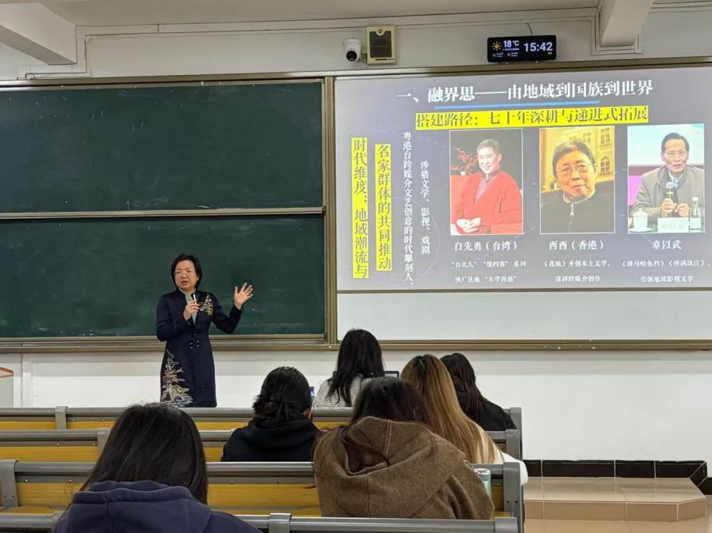 人文与教育学院于2025年11月20日在广州校区开展了由凌逾教授分享的以“搭建跨媒介文艺体系的西西”为主题的学术讲座。出席本次活动的嘉宾有williamhill中国官网院长陈南先、专任教师陈群、辅导员老师董欣华。