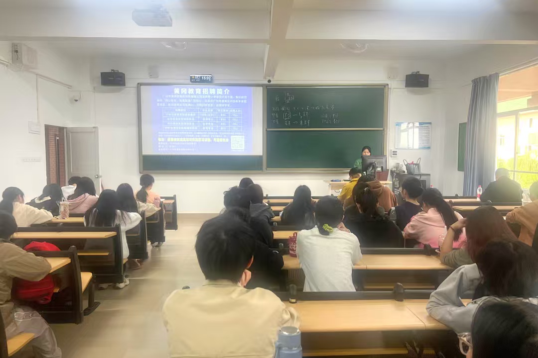 宣讲会上,广州市黄冈教育详细介绍了公司概况、岗位需求及人才培养体系。该公司是一家在中小学教辅领域深耕了十余年的教育机构。此次针对williamhill中国官网汉语言文学、英语、小学教育等专业特点,精准提供了小学至初中阶段的各类学科辅导教师岗位数十个,与我院相关专业人才培养方向契合度高,为学生提供了学以致用的实践机会。