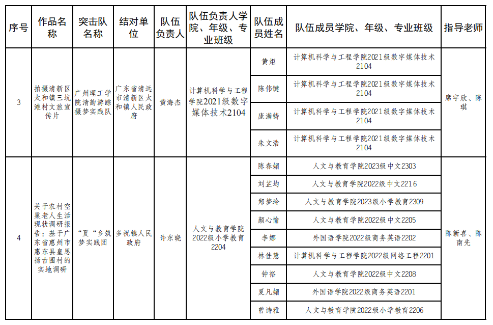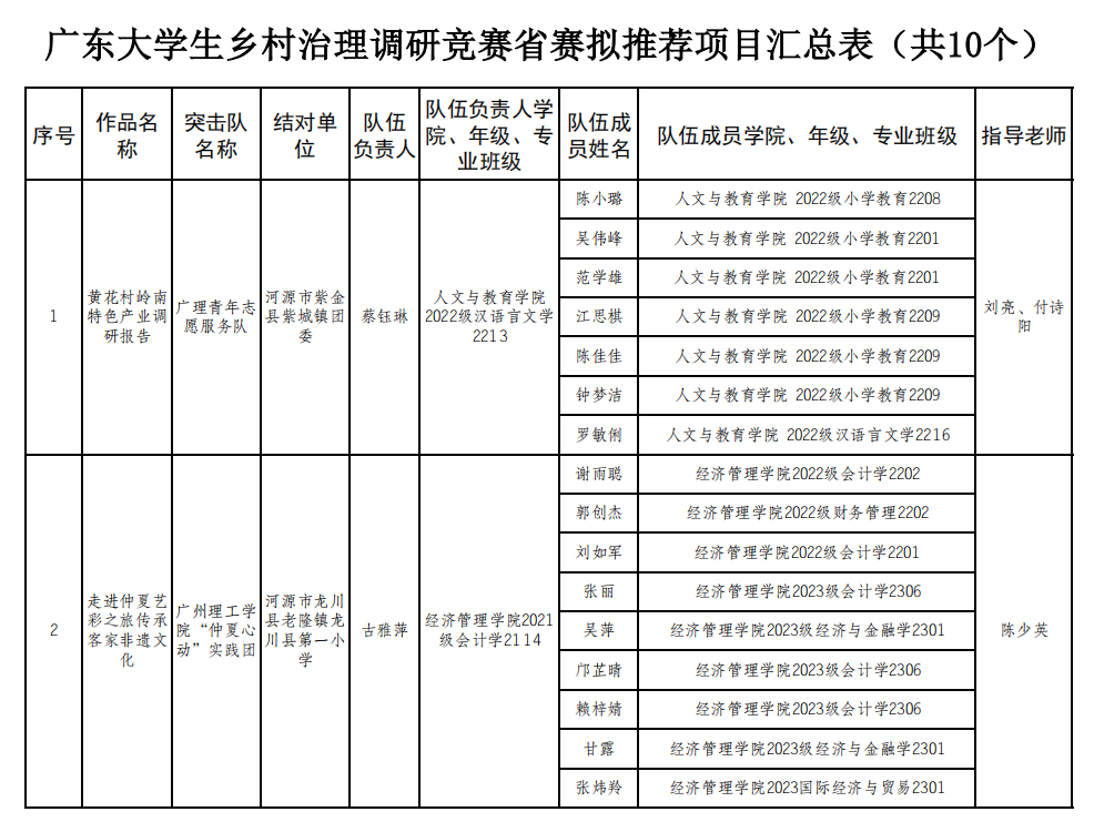 附件:广东大学生乡村治理调研竞赛校内选拔赛评审结果(拟推荐参加省赛作品)