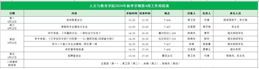 人文与教育学院2024年秋季学期第4周工作周程表