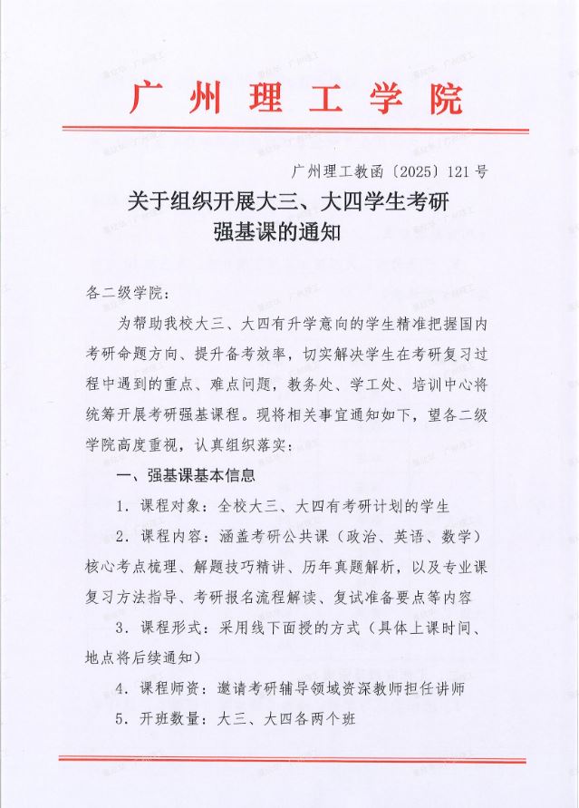 关于组织开展大三、大四学生考研强基课的通知